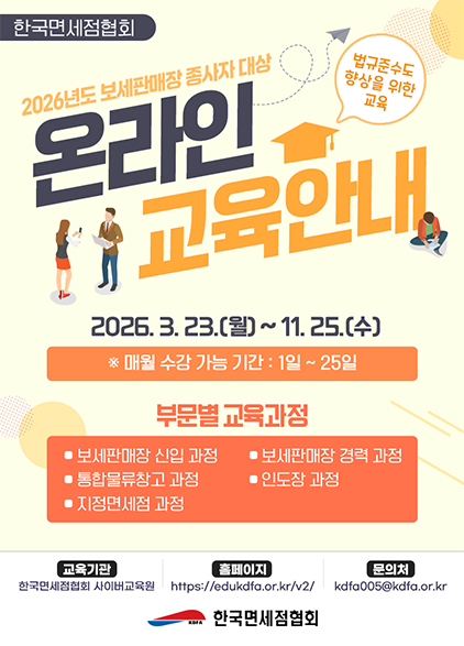 | 61 | 보세판매장 종사자 신입/경력 과정 수강 관련 안내 | 관리자 | 2024.04.05 | - | 2862 |