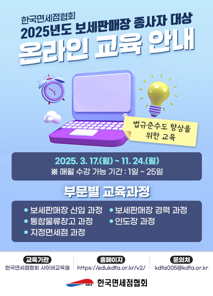 | 65 | 온라인 교육기간 연장 안내(~12/18) | 관리자 | 2025.11.26 | - | 497 |