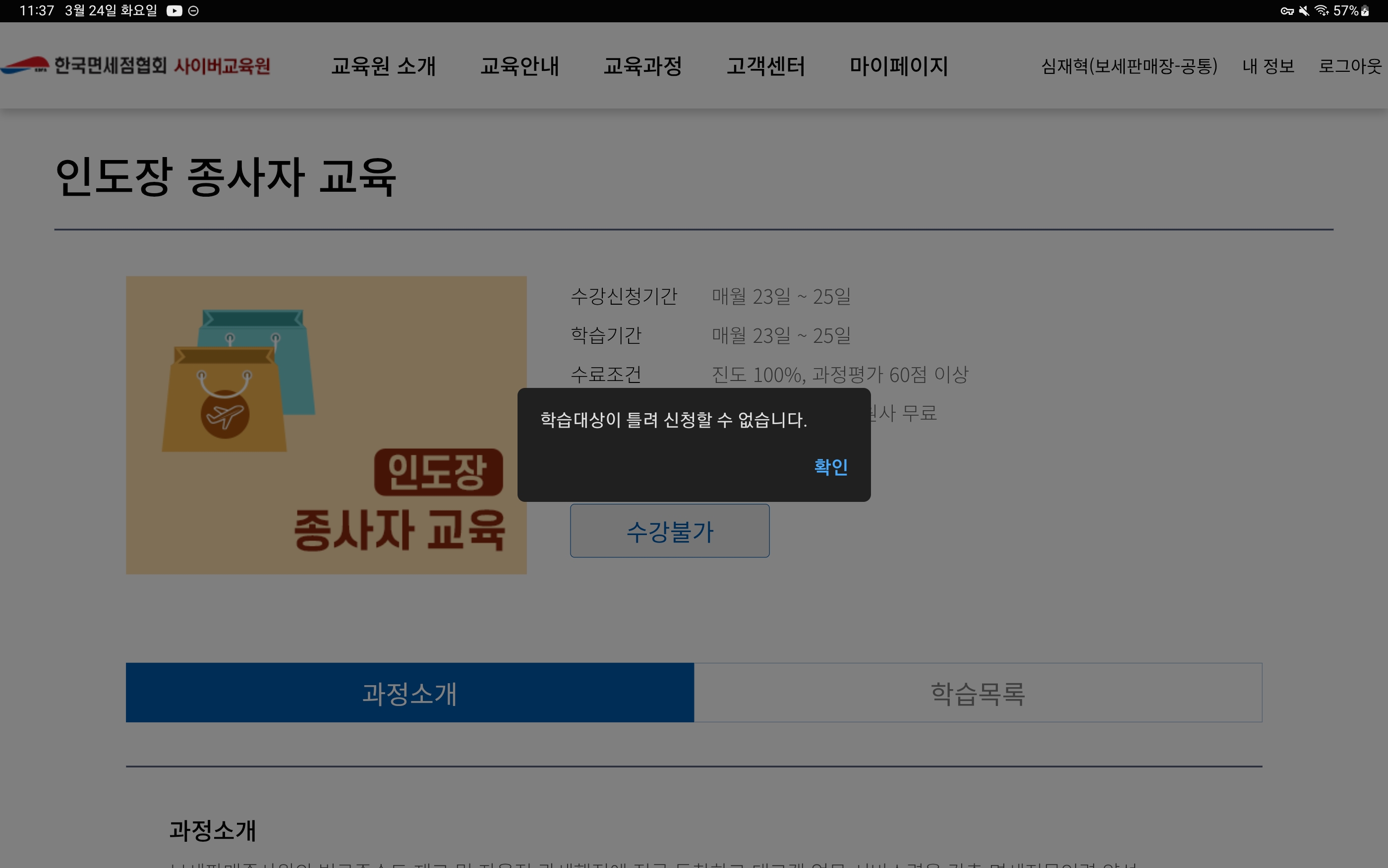 현재 소속점이 보세판매장으로 설정되어 있는 것으로 확인됩니다.