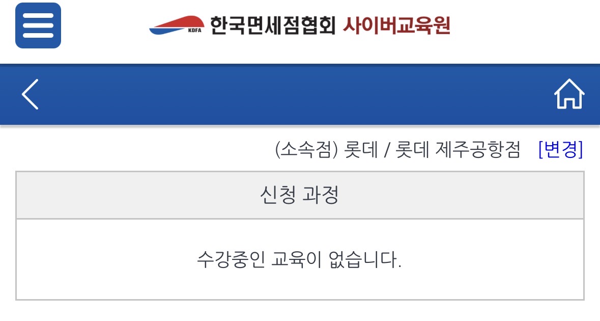 보세판매장 종사자 교육(신입)과정 수강 가능토록 조치되었으니 신청 후 수강하시면 됩니다.